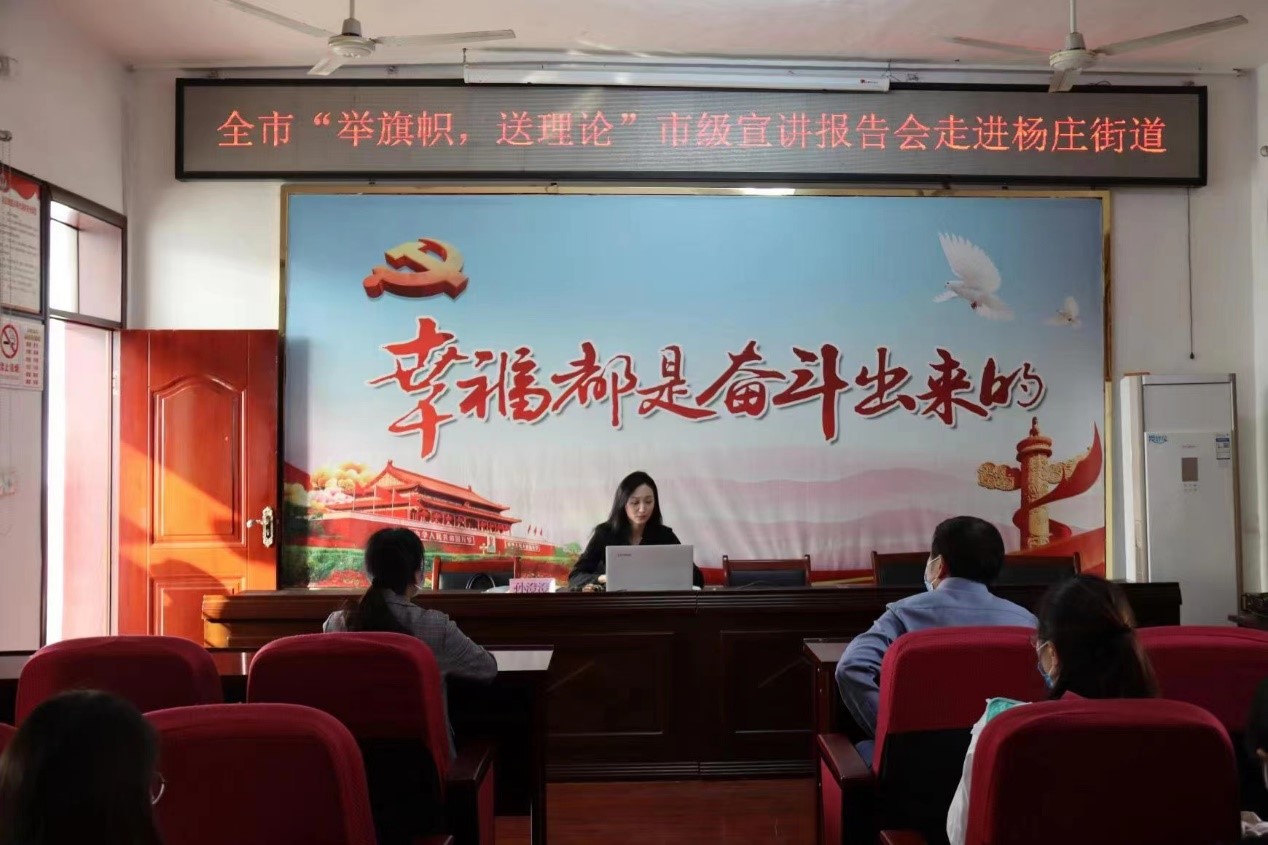 为把学习贯彻习近平总书记在省部级主要领导干部专题研讨班上重要讲话精神、《习近平谈治国理政》第四卷不断引向深入。beat365官方网站beat365官方网站刘奔前和孙澄澄两位老师受到中共淮北市委宣传部中共淮北市委讲师团的指派,分别走进东街道和杨庄街道开展“举旗帜 送理论”专题宣讲活动。