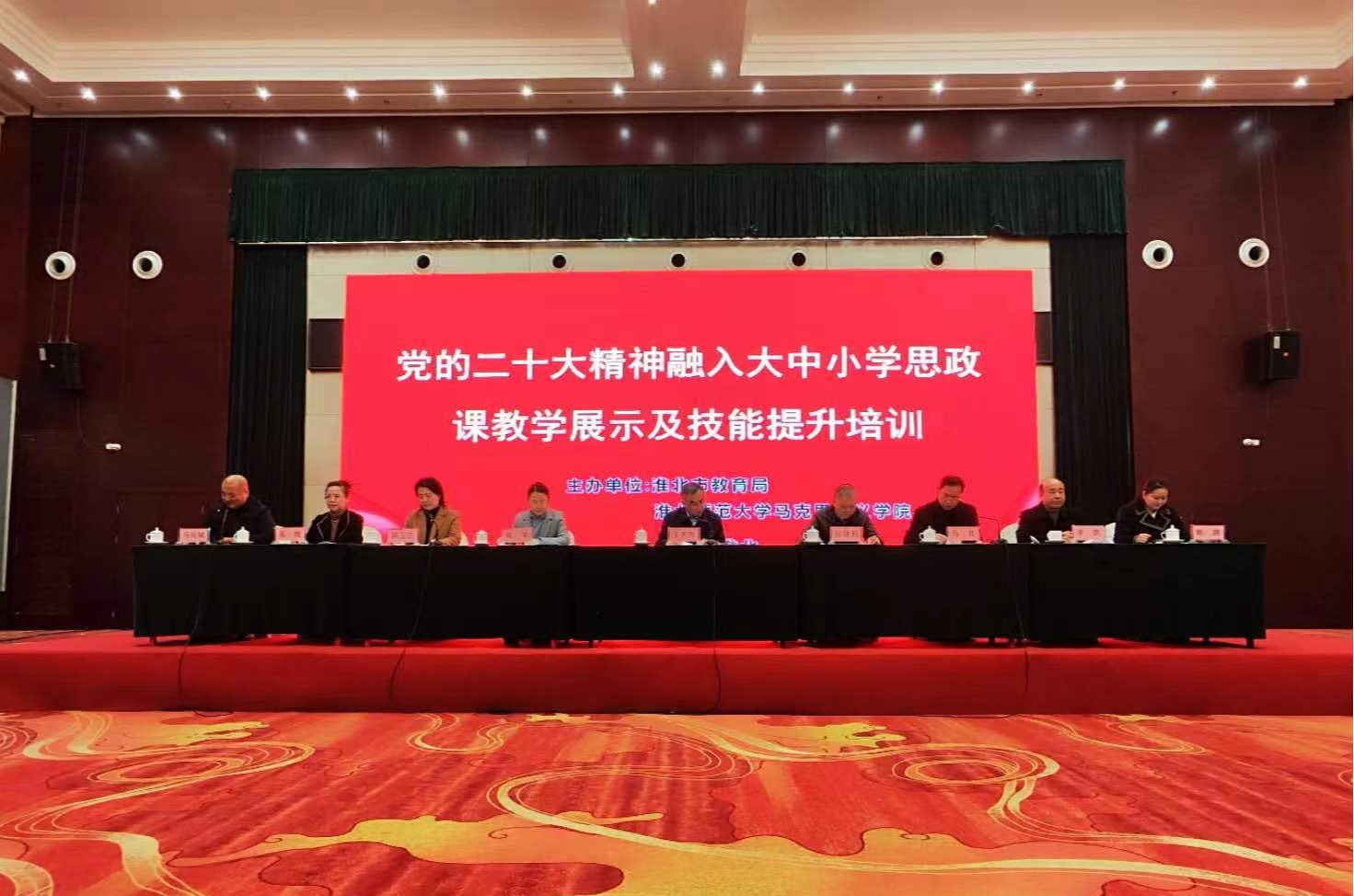 2023年3月18日,由淮北市教育局和淮北师范大学beat365官方网站联合举办的“党的二十大精神融入大中小学思政课教学展示及技能提升培训”在淮北矿业(集团)有限责任公司会议中心举行。我校党委委员、副校长汪建利,校党委委员、beat365官方网站与经济管理学院院长吴玲受邀出席会议,beat365官方网站专业老师参加了本次活动,孙澄澄、廖永林两位老师作为选手参加比赛和成果展示。
