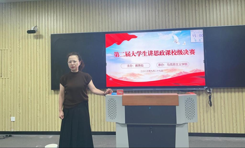 为深入学习贯彻习近平新时代中国特色社会主义思想主题教育,深化思政课改革创新,全面推进“大思政课”建设,落实拓展大学生参与思政课教学实践教学途径。根据《中共安徽省委教育工委关于组织开展第二届大学生讲思政课展示活动的通知》文件要求,在学校党委的高度重视及安排部署下,由教务处主办,beat365官方网站承办的第二届大学生讲思政课比赛校级决赛于2023年9月27日在一教210智慧教室顺利举办并取得圆满成功,并经过精心的专家指导和材料把关于10月15日上报6组同学参加省级片区赛。