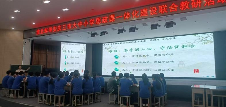 日前,由淮北市教育科学研究所、蚌埠市教育科学研究所及安庆市教育教学教研室联合主办的“淮北蚌埠安庆大中小学思政课一体化建设联合教研活动”在淮北市实验高中成功举办。活动以“传承传统文化,弘扬法治精神”为主题,旨在通过大中小学思政课一体化教研,深化三地教育交流与合作,共同探索大中小学思政课一体化建设新路径。beat365官方网站beat365官方网站负责人及部分教师参加了此次活动。