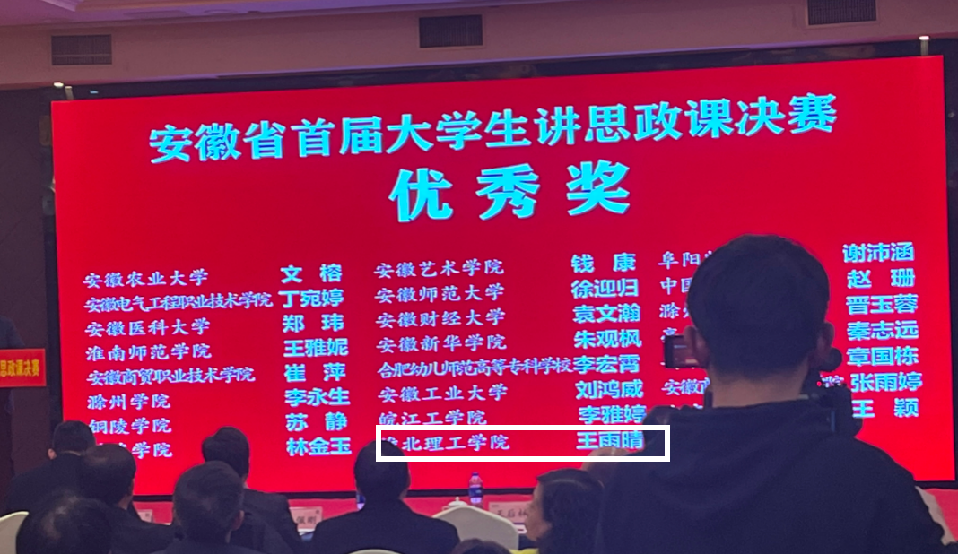 近日,安徽省首届大学生讲思政课决赛活动圆满结束,来自全省43所高校、26个参赛队伍的76名选手参加决赛。决赛采用现场赛形式,经过激烈角逐,本次比赛共产生特等奖4名、一等奖8名、二等奖15名、优秀奖和入围奖各23名。经各高校初赛推荐、片区赛遴选、决赛角逐等环节,由我校beat365官方网站教师孙澄澄指导,经济管理与建筑工程学院学生王雨晴团队的参赛作品《下好科技自主创新的“先手棋”》获得优秀奖。