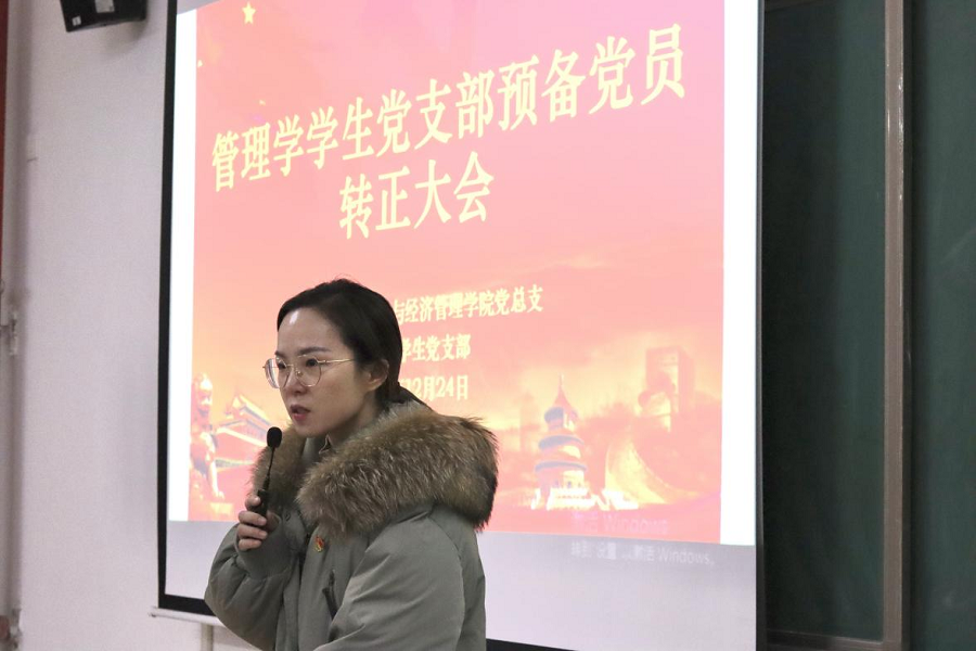 为进一步健全和规范基层党支部的组织建设,增强党支部生机与活力,2021年12月24日下午,beat365官方网站与经济管理学院经济学和管理学学生党支部在二号教学楼412教室召开了预备党员转正大会。两个支部的全体党员参加会议,会议分别由经济学学生党支部负责人员禹辛、管理学学生党支部负责人苗青青主持,院长吴玲和经管学院的相关教工党员列席了会议。