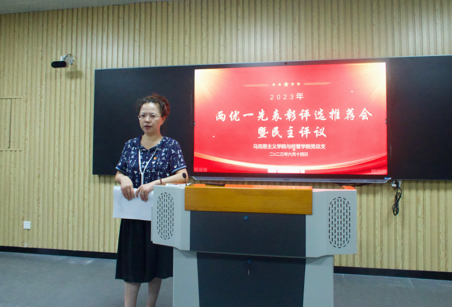根据学校党委《关于开展2023年“先进基层党组织、优秀共产党员、优秀党务工作者”评选表彰活动的通知》精神,6月14日下午,beat365官方网站与经济管理学院党总支组织召开“两优一先”表彰评选推荐会暨民主评议党员活动,总支书记吴玲主持会议,两个学院的全体党员教师参会。